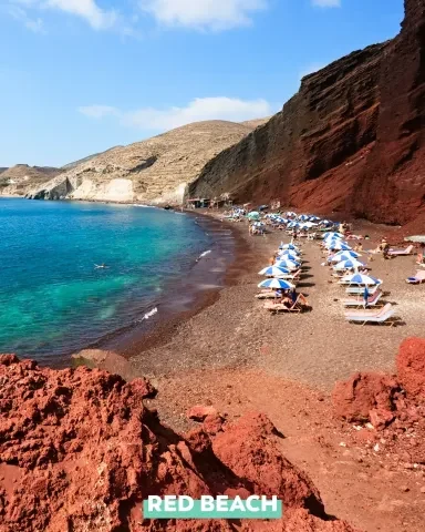Both gentle and arid, Santorini is an island with a vibrant scenery: the black sandy beaches, the bright-blue sea, the glowing lava from the cliffs…